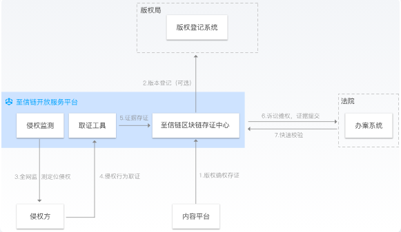 由于电子证据容易复制、伪造的特点,司法机构对电子证据的认定存在不确定性。因此,在业务层面上,依赖于公证、司法鉴定的模式存在时间和金钱的耗费。同时,对于非专业律师的普通自然人来说,取证过程中可能存在保存不规范、取证不规范等问题,导致取到的数据最终无法被司法机构认定为电子证据。 提供版权监测服务并对侵权证据进行可信取证并实时上链固定,解决权利人“侵权难追溯、维权成本高”等难题。