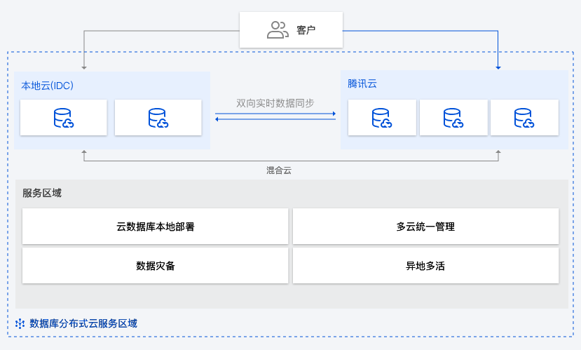 数据库分布式云中心支持在保留云下本地环境的情况下,充分利用云上弹性资源,在业务高峰期,在云端快速扩展数据库,把部分业务流量引到云端。