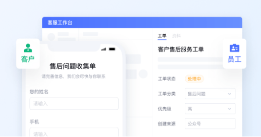 • 支持客户在申请体验、售后反馈等多个场景快速自助建单。