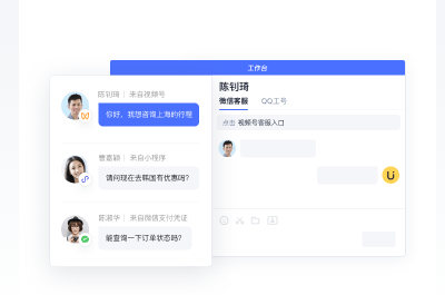 覆盖QQ、微信在内的主流沟通渠道,融合小程序、微信公众号、Web IM、音视频等沟通渠道,统一工作台无缝切换提升客户服务效率与客户沟通体验。